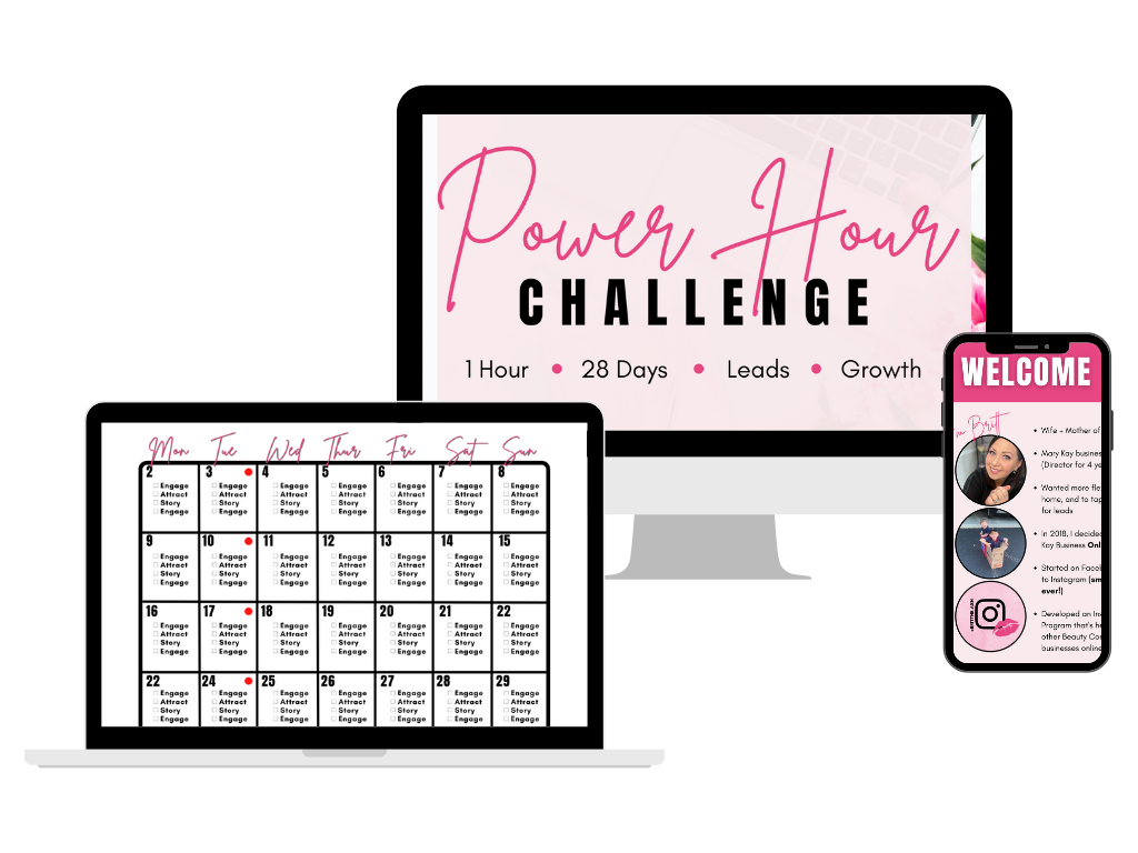 Join the challenge and I’ll teach you how to work your business in ONE hour every day for the next 28 days and fill your pipeline with new leads!